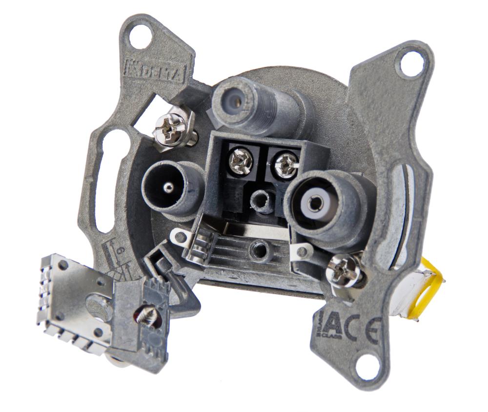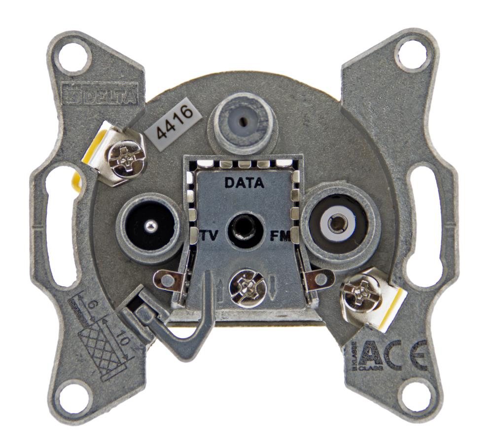 - 3-Loch Multimedia Antennensteckdose für Kabelfernsehen (DVB-C) mit Filtertechnik und Modem-Ausgang, rückkanaltauglich.