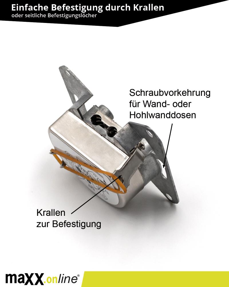 Die Antennensteckdose kann Auf- oder Unterputz installiert- oder auch in Hohlwanddosen eingebaut werden.