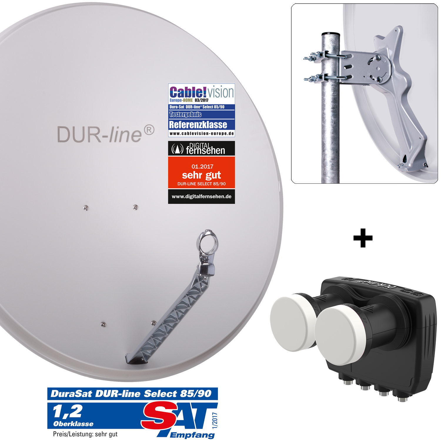 * Magazin: DIGITAL FERNSEHEN 1.2017; Ergebnis: „sehr gut“ ; Im Test: DUR-line Select 85/90; www.digitalfernsehen.de