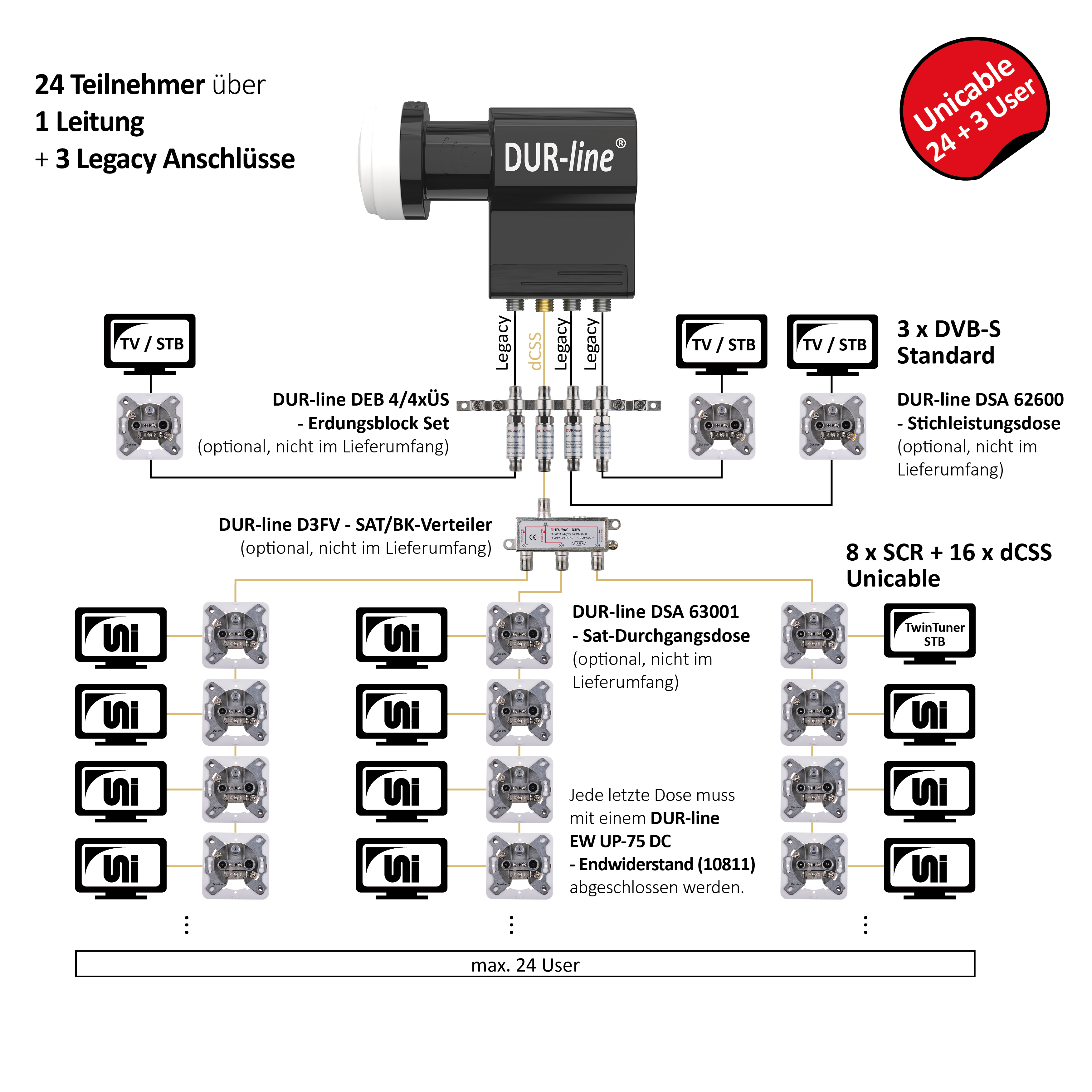 DUR-line UK 124-3L dCSS - Unicable LNB
