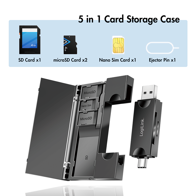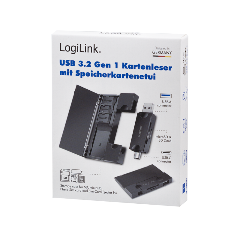 USB 3.2 Gen1 Kartenleser für SD- & microSD-Karten, mit Karten-Aufbewahrung