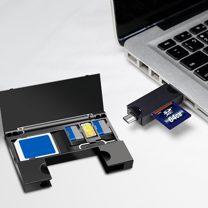 - Integrierte Speicherkarten-Aufbewahrung im Gehäuse für 1x SD-Karte, 1x Nano-SIM, 2x microSD-Karte und SIM-Karten-Auswerfer-Pin