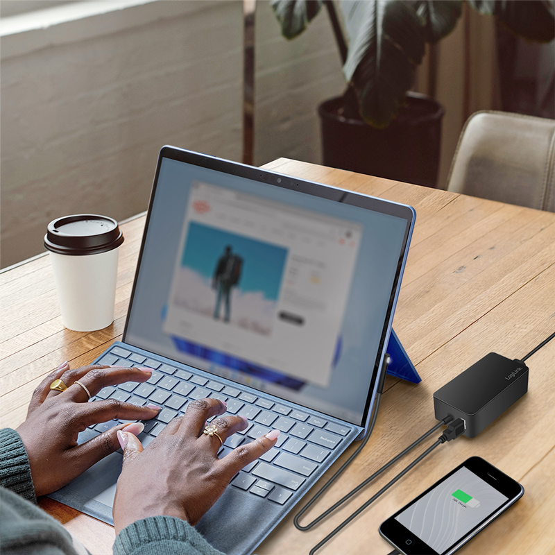 Für Reisende zum schnellen Aufladen von Microsoft Surface entwickelt. Kompatibel mit Microsoft Surface Pro, Surface Laptop, Surface Go und Surface Book. Gleichzeitig können Sie über den zusätzlichen USB-Port ein anderes Gerät we z. B. Ihr Smartphone oder eine Digitalkamera aufladen.