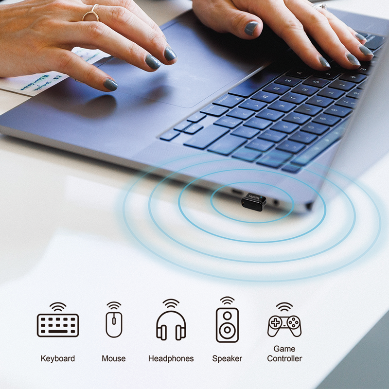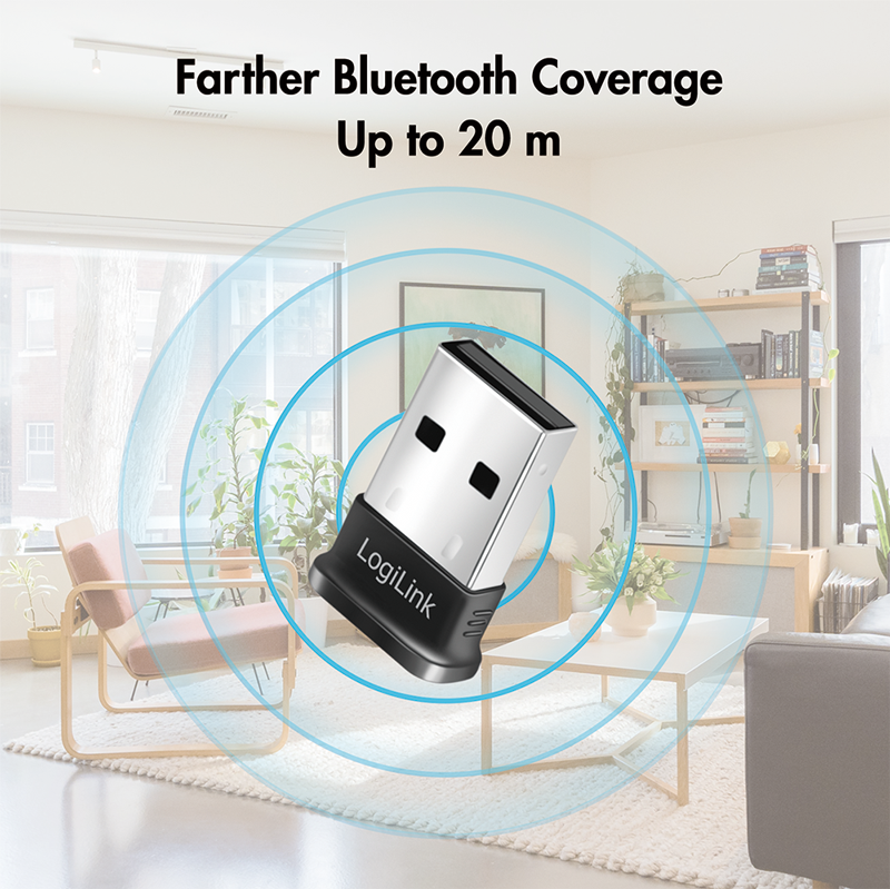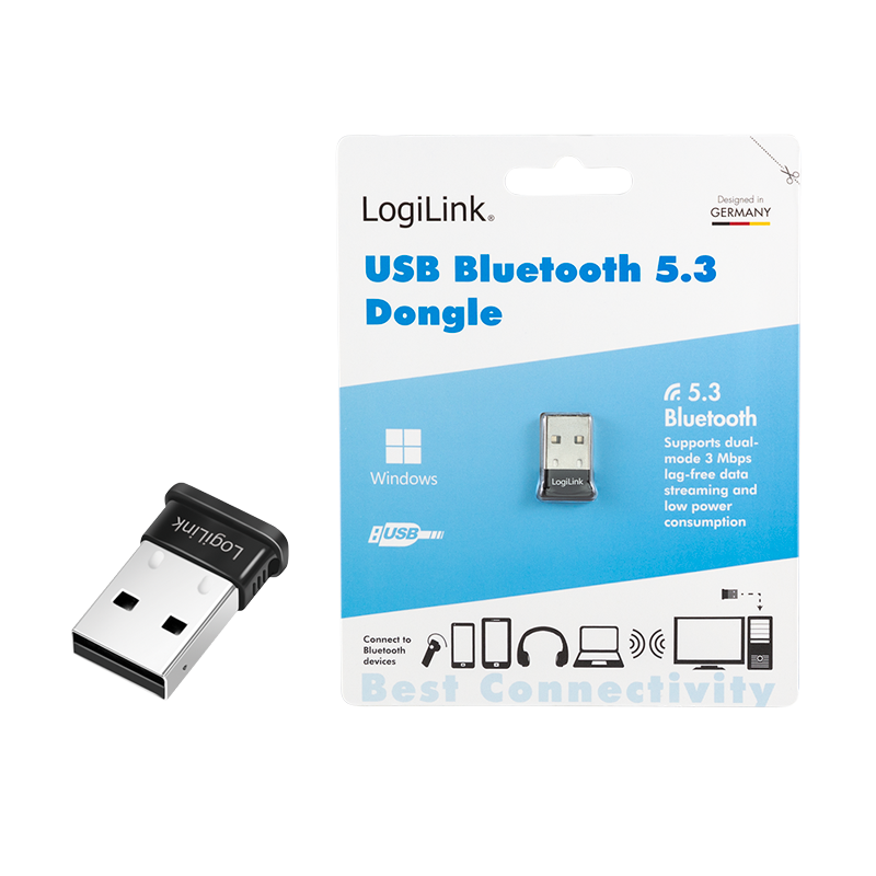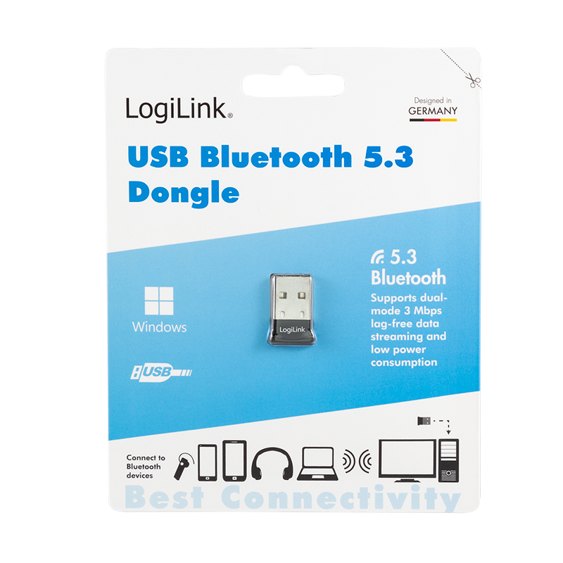 Der LogiLink USB BBT 5.3 adapter ist extrem klein, latenzfrei und mit verlustfreier Klangqualität im Vergleich zu BT 5.0, bei gleichzeitig geringerem Stromverbrauch. Perfekte Synchronisierung von Ton und Video auch bei großen Entfernungen.