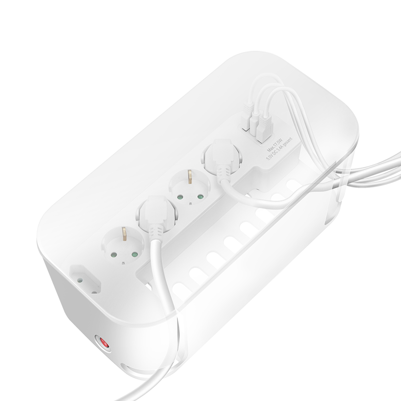 Mit unserer Kabelbox von LogiLink können sie an Ort und Stelle bis zu 8 Geräte z. B. Laptop, Smartphone, Tablet, Drucker oder Lampe, gleichzeitig mit Strom versorgen und benötigen dafür nur einen Steckdosenanschluss. Die integrierten USB-Anschlüsse bieten zudem die Möglichkeit, mobile Geräte wie Smartphones oder Tablets direkt über die Kabelbox aufzuladen, ohne zusätzliche Netzgeräte verwenden zu müssen. Die Anschlüsse sind platzsparend, sicher, staubgeschützt und dekorativ verstaut. Sie vermeiden durch das gebündelte Verlegen der Kabel Stolperfallen und Beschädigungen der Kabel. Dank des modernen Designs passt unsere Kabelbox optisch in jedes Erscheinungsbild. Egal ob im Büro oder zu Hause.