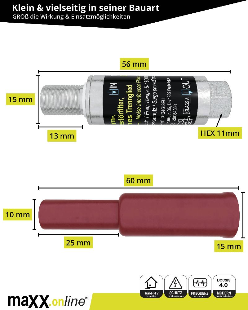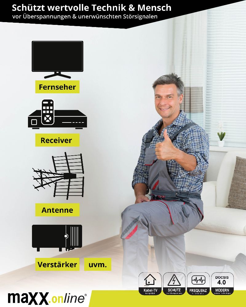 Koaxialkabel Überspannungsschutz- & Mantelstromfilter für Kabel TV / DVB-C / DVB-T2
