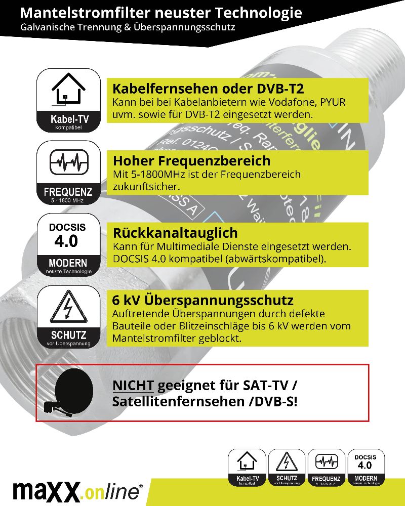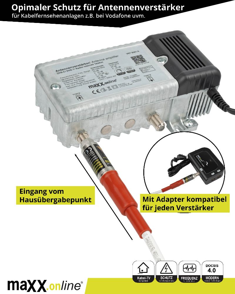 Produktinformationen "Koaxialkabel Überspannungsschutz- & Mantelstromfilter für Kabel TV / DVB-C / DVB-T2"