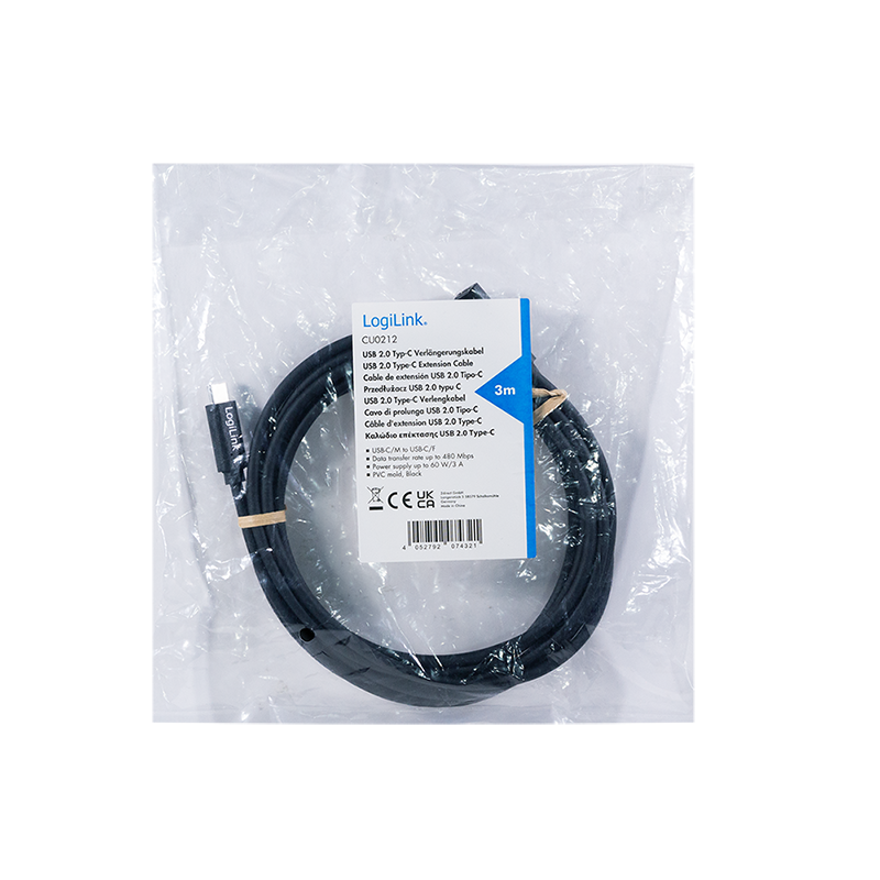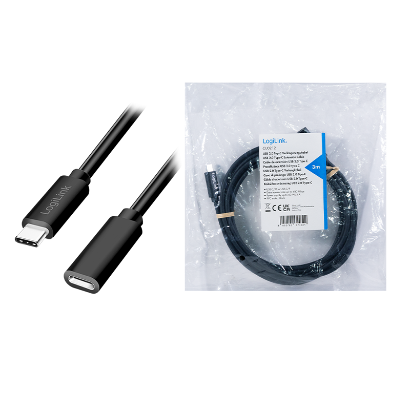 Produktinformationen "USB 2.0 Type-C-Kabel, C/M zu USB-C/F, PD, schwarz, 3 m"