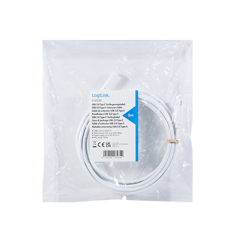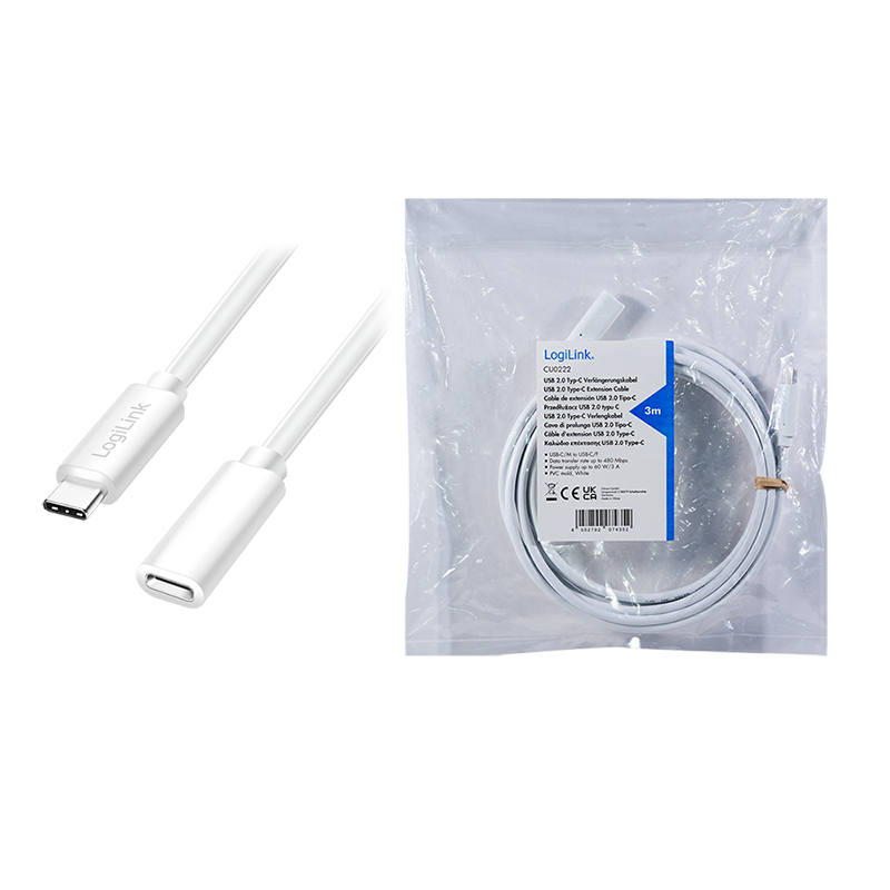 Produktinformationen "USB 2.0 Type-C-Kabel, C/M zu USB-C/F, PD, weiß, 3 m"