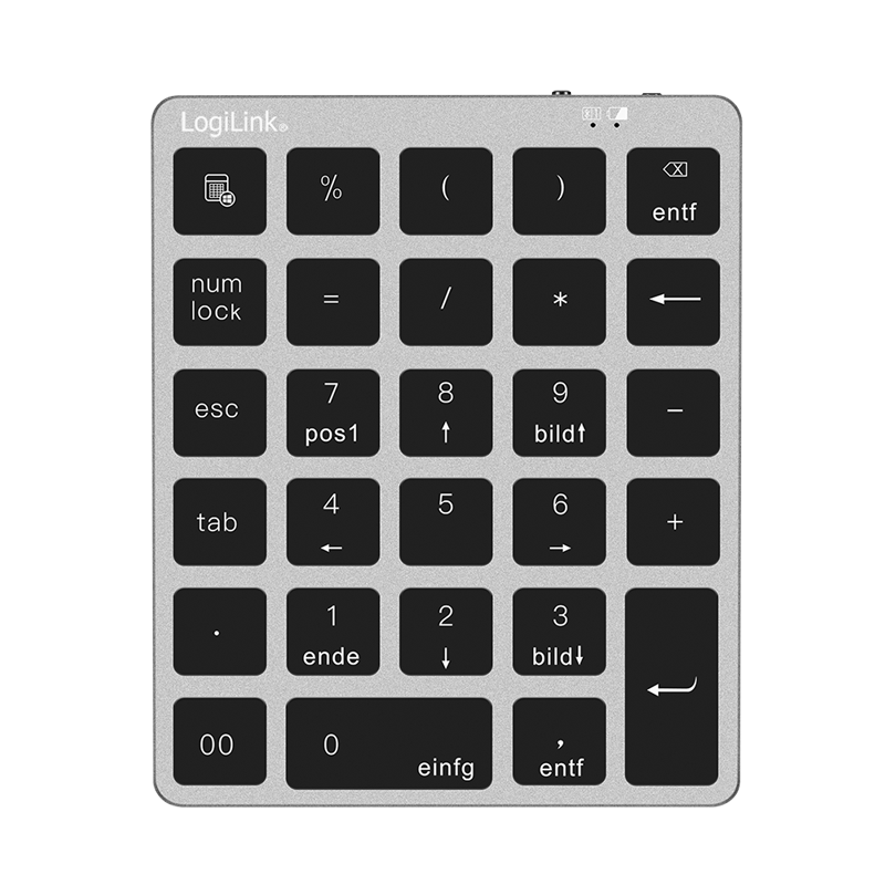- 28 Tasten: NumLock, ESC, Löschen und Taschenrechnertaste