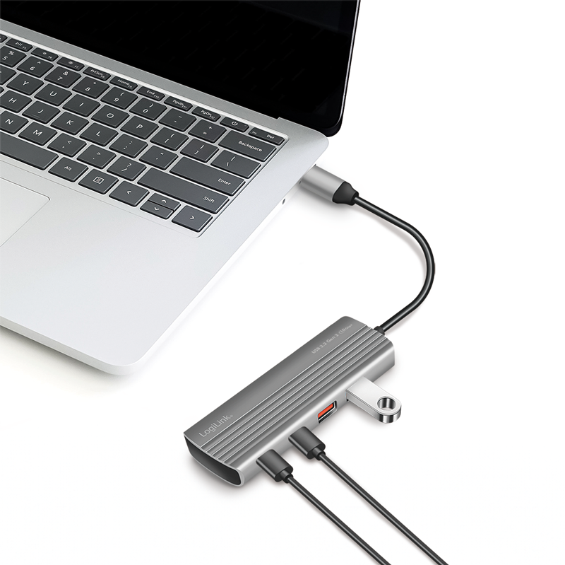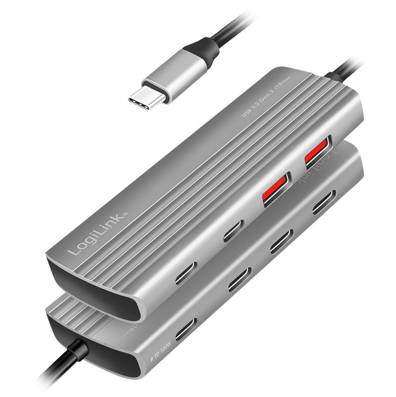 Der USB-C Hub unterstützt den modernen USB 3.2 Gen2-Standard und ermöglicht Ihnen so den Anschluss von bis zu 7 Geräten. Natürlich können Sie auch Geräte älterer USB Generationen anschließen und nutzen. Dieser praktische und edel aussehende Hub im Aluminium-Design ist auf jedem Schreibtisch ein wahrer Hingucker. Einfacher Anschluss per Plug & Play. USB 3.2 Gen2 Übertragungsraten von bis zu 10 GBit/s.