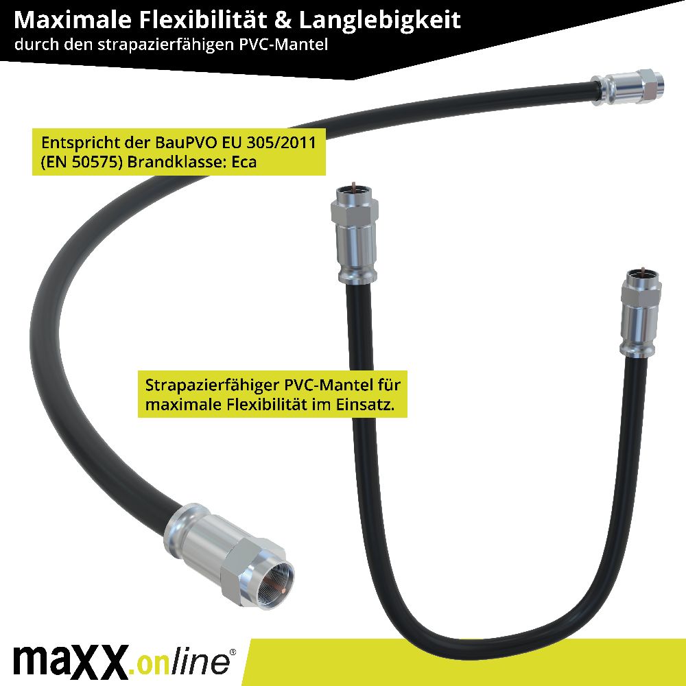 - Schwarzer FLEX PVC Mantel (für maximale Flexibilität), wasserfest & UV beständig