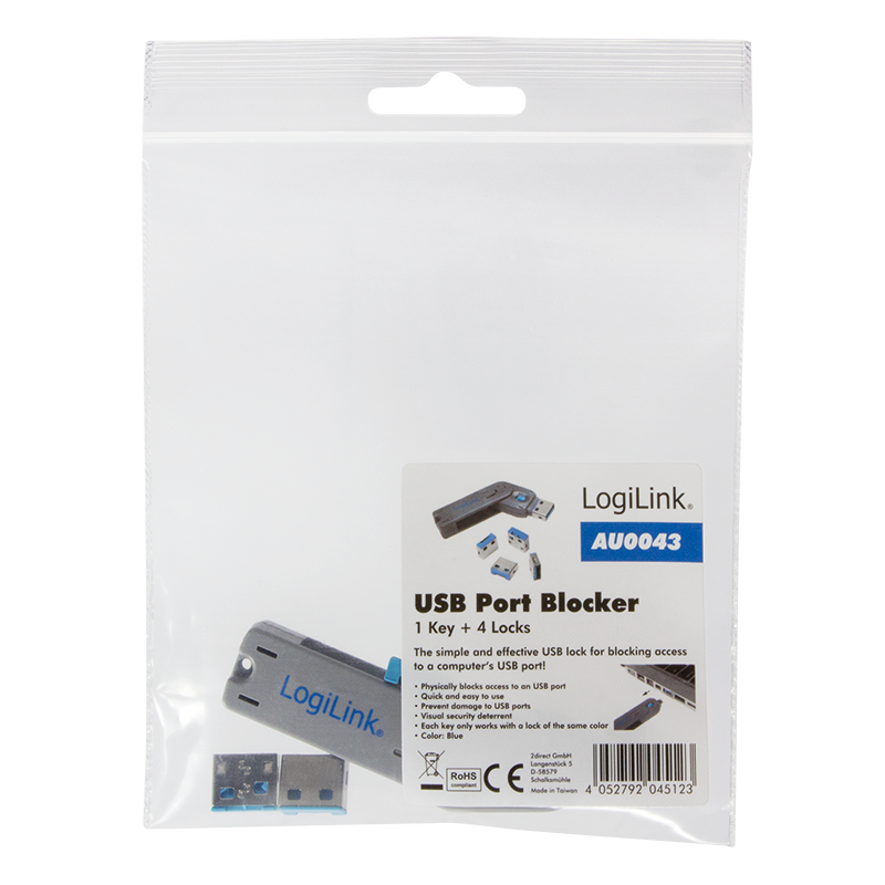 Das USB-Port Schloss von LogiLink ist ein einfacher und effektiver Weg, um den USB-Port an einem Computer zu blockieren. Netzwerkadministratoren können mit diesem kleinen und praktischen Gerät verhindern, dass der Port genutzt wird und somit das Kopieren von sensiblen Daten oder dem Übertragen von Viren per MP3-Player, USB Sticks und anderen Speichergeräten vorzubeugen.