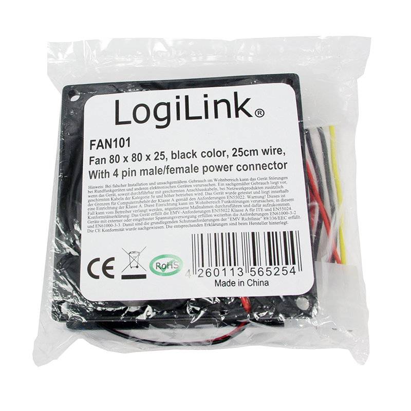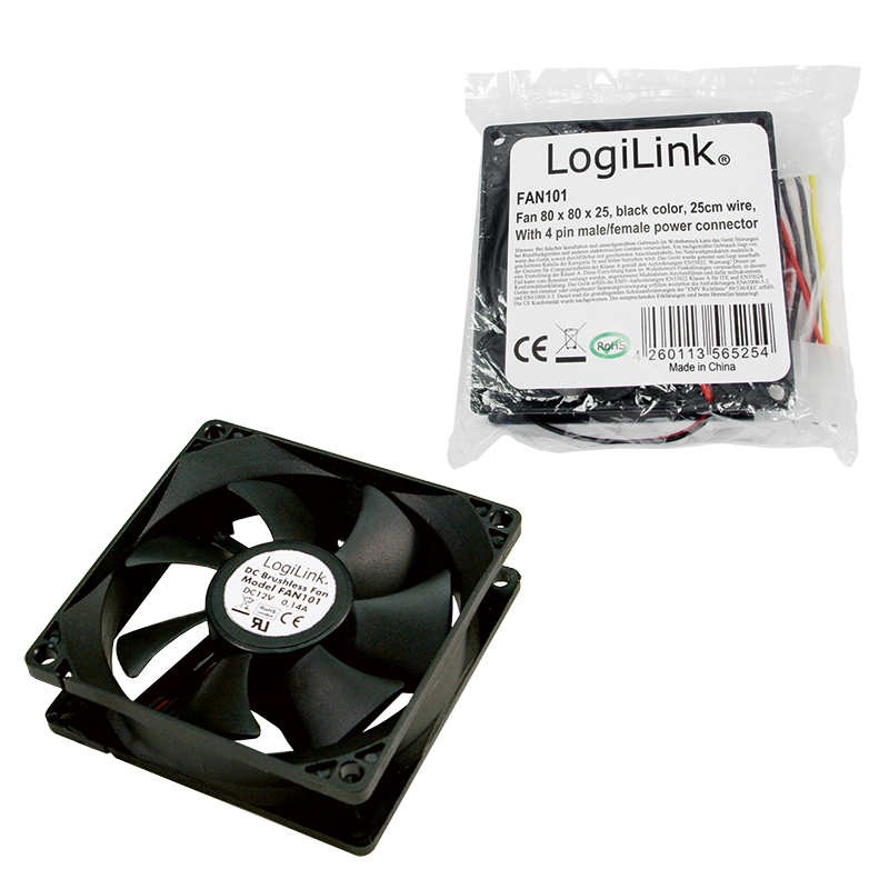 Der LogiLink Fan101 kann durch seine lange Lebensdauer von bis zu 25.000 Stunden optimal zu Kühlung des Computers eingesetzt werden. Der Anschluss erfolgt über ein 5.25" Y-Spannungskabel des PC-Netzteils. Die Abmesungen sowie der Lochabstand des Verschraubungssystemes sind genormt. Der LogiLink FAN101 arbeitet trotz des Volumenstromes von 22,4 CFM sehr leise.
