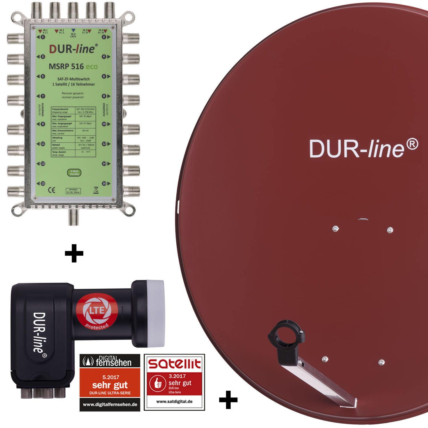 • 1 x DUR-line ® + Ultra Quattro LNB mit integriertem LTE Filter