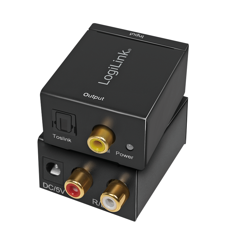 - Konvertiert analoge L/R zu digitale koaxial oder Toslink Audiosignale