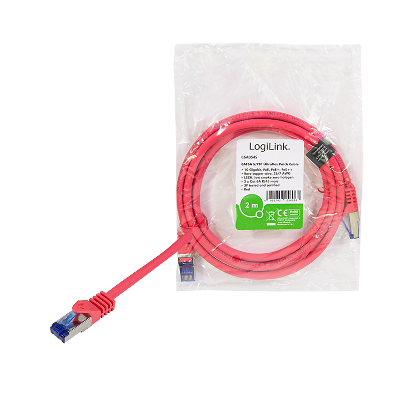 Das zertifizierte LogiLink Cat.6A Patchkabel ist für Datenübertragungen bis zu 10 Gigabit Ethernet und Übertragungsfrequenzen bis zu 500 MHz ideal geeignet. Der Mantel ist halogenfrei und flammwidrig, die Kupferadern sind paarweise geschirmt, der Gesamtschirm besteht aus Kupfergeflecht. Die geschirmten RJ45 Stecker sind mit einem angespritzten, sehr schlanken Knickschutz sowie Rastnasenschutz versehen.