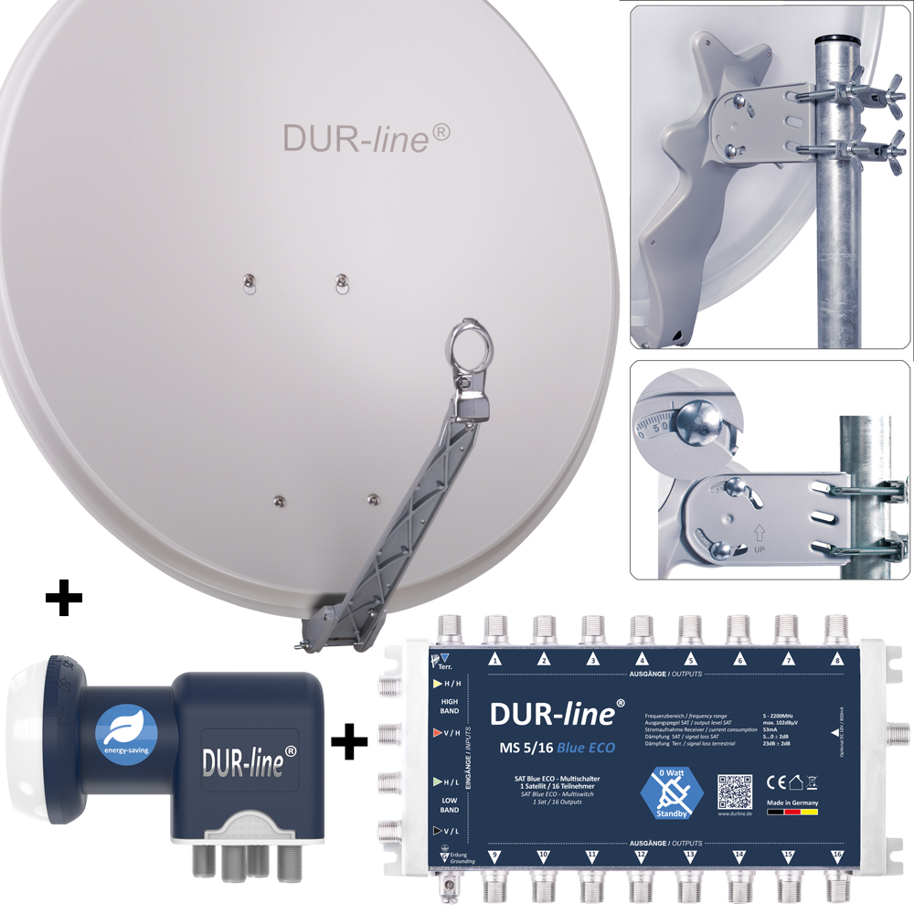 - 1 x DUR-line ® Blue ECO Quattro LNB - Unsere beste LNB Serie mit niedrigstem Stromverbrauch
