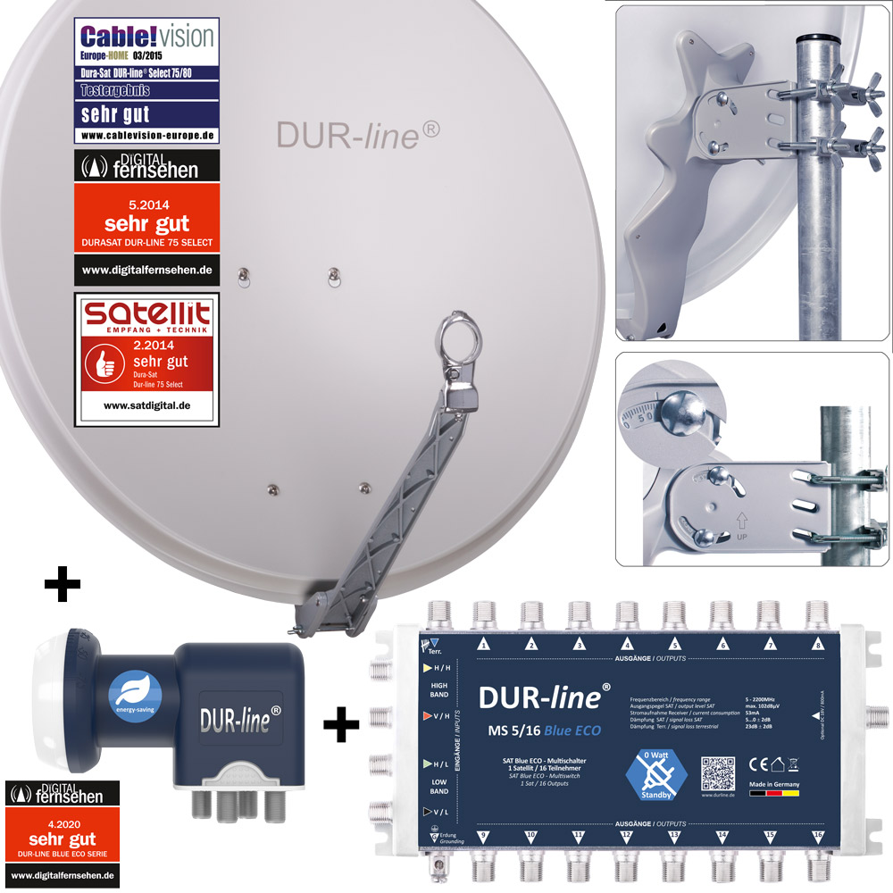 * Magazin: SATELLIT 2.2014; Ergebnis: „sehr gut“ ; Im Test: DUR-line Select 75/80; www.satdigital.de