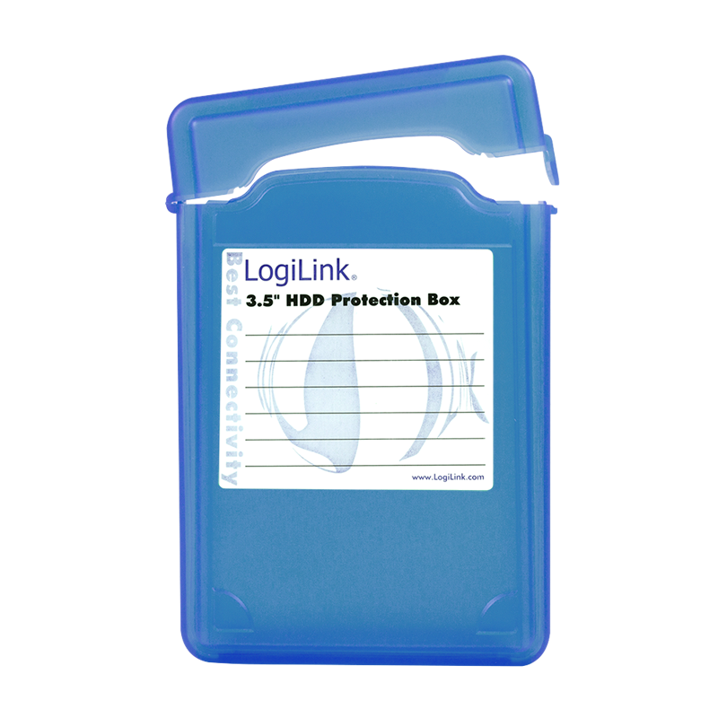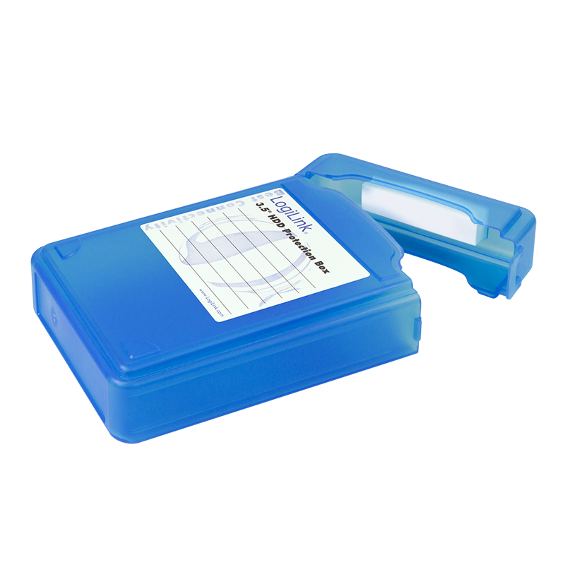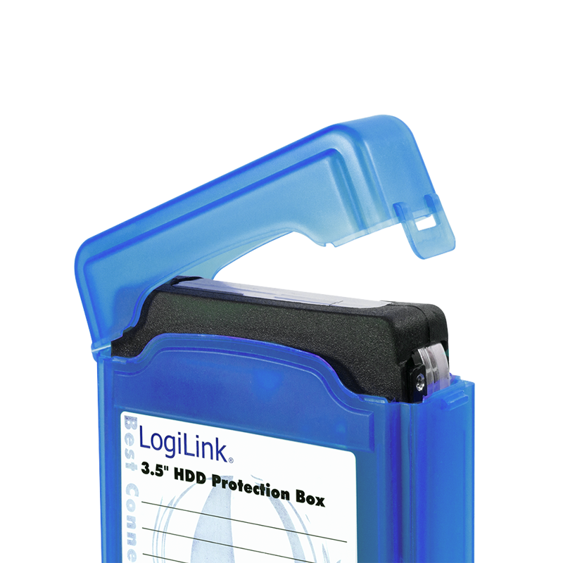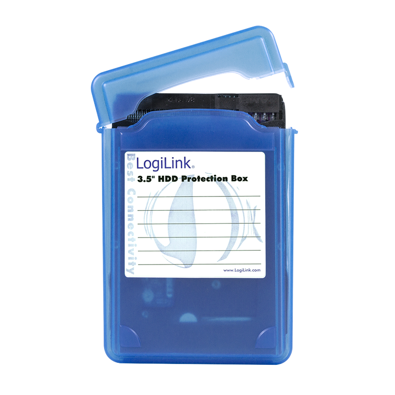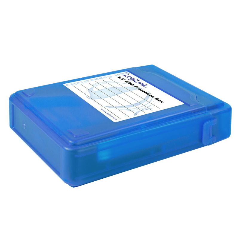 Festplatten Schutz-Box von LogiLink zur Aufbewahrung und Transport von 3,5" HDDs. Das Gehäuse ist handlich und verschließbar. Inkl. Beschriftungslabel zum Beschriften der Box.
