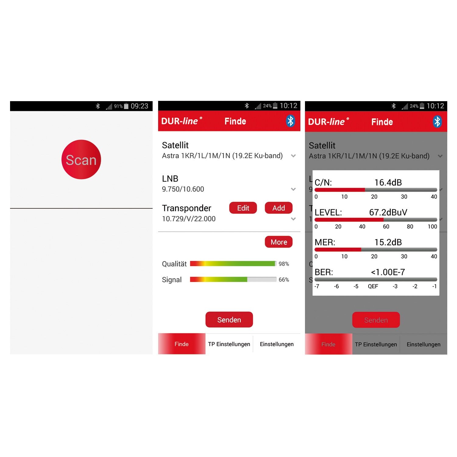 - Weitere Messdaten über App (Pegel, CN, BER, MER)
