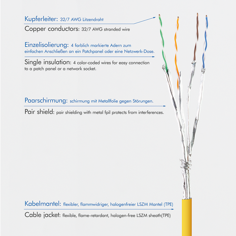 - Cat.6A U/FTP 10G 500MHz Patchkabel LSZH-TPE