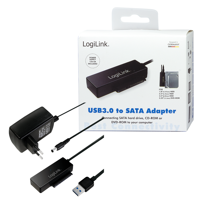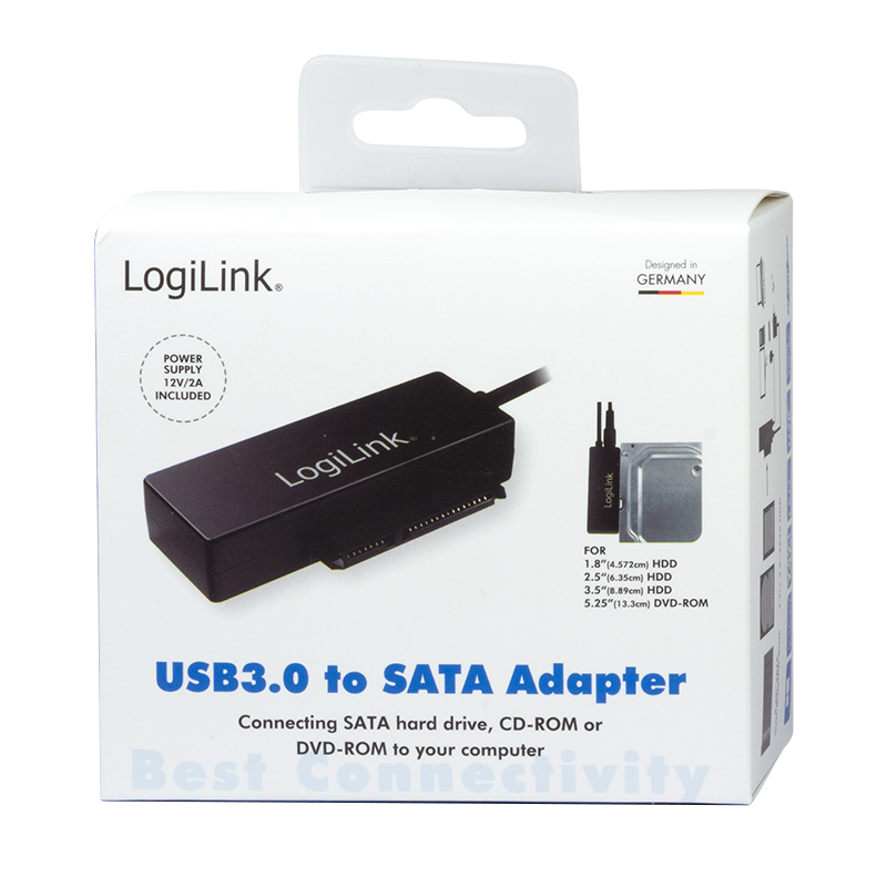 USB 3.0 auf SATA Adapter von LogiLink zum Anschluss von SATA Festplatten, CD-Laufwerke etc. an den USB 3.0 Port. Übertragungsraten von bis zu 5 Gbit/s, abwärtskompatibel zu USB 2.0 und USB 1.1. Eine LED zeigt die Aktivität des Adapters an.
