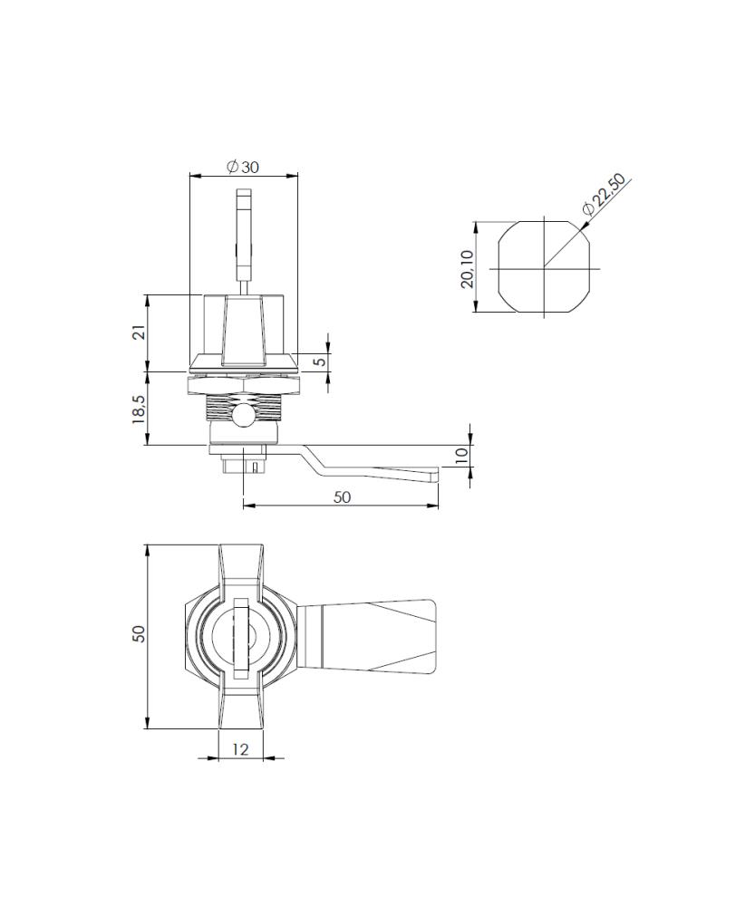 Verchromtes Zylinderschloss für Verteilerschränke, Schaltschränke, Zählerschränke oder Kleinverteiler.
