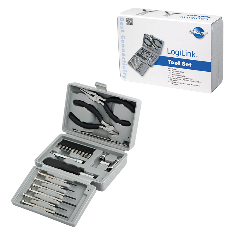 Das praktische Netzwerk Werkzeugset von LogiLink bestehend aus einem mirco Schraubendreher, micro Cutter, mini Telefonzange, Bit-Schrauben dreher mit Verlängerung, Bits, Steckschlüssel und Pinzette unterstützt Sie hervorragend bei Ihrer Arbeit. In dem praktischen Koffer mit Befestigungssystem haben alle Werkzeuge Platz und sind vor Schmutz und Beschädigung geschützt.