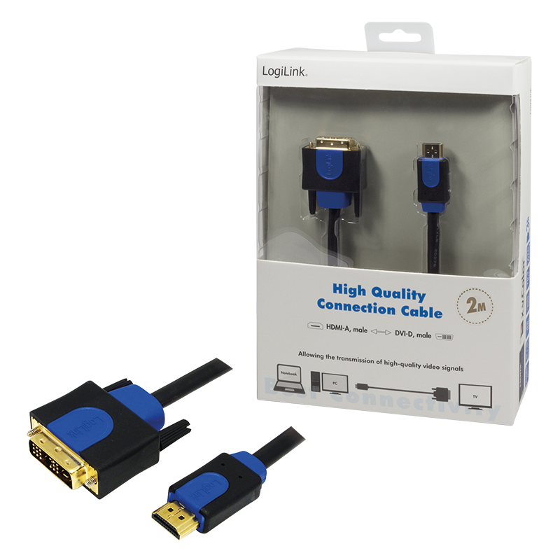 Produktinformationen "HDMI-Kabel, A/M zu DVI/M, 1080p, bidirekt, schwarz/blau, 2 m"