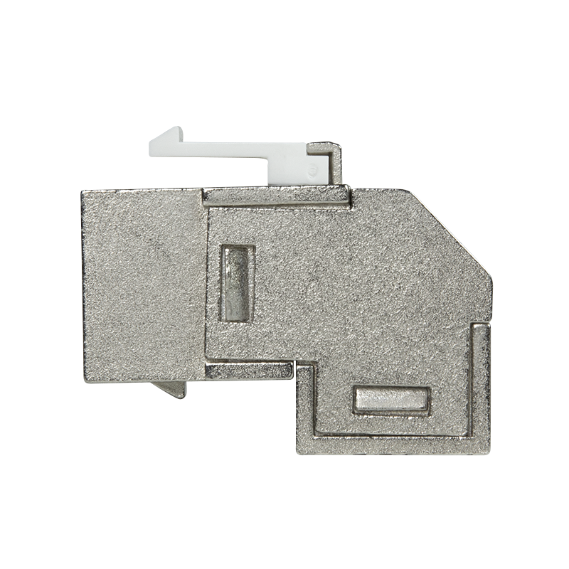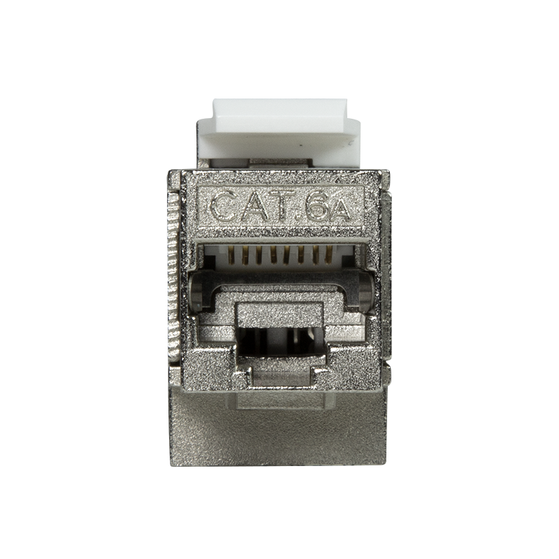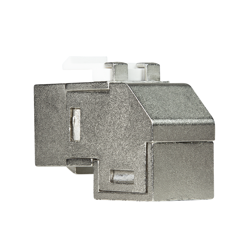 Produktinformationen "Cat.6A Keystone Kupplung 2 x RJ45 STP, 90° gewinkelt, Metallgehäuse"