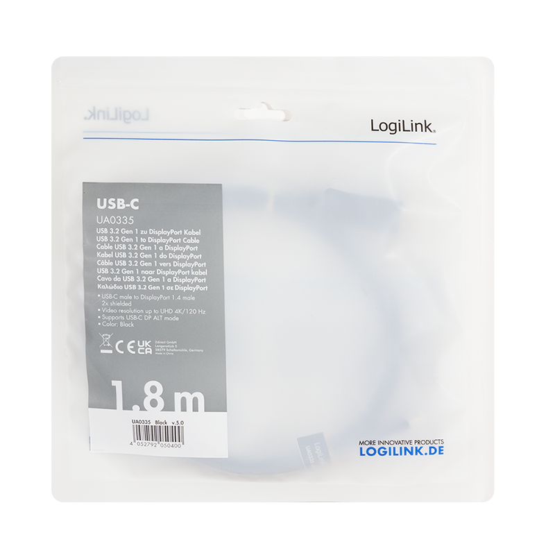 LogiLink's USB Typ-C zu DP Kabel unterstützt Anpassungen und Übertragungen von bis zu 4K/120 Hz (3840 x 2160). Perfekt für Samsung Galaxy S8, Apple neue MacBook 12" und MacBook Pro 2017/2016 13" und 15" und mehr USB-C-Geräte. Es überträgt sowohl Video als auch Audio, und ist kompatibel mit Displays, Monitoren, sowie Projektoren mit entsprechendem DisplayPort-Anschluss.