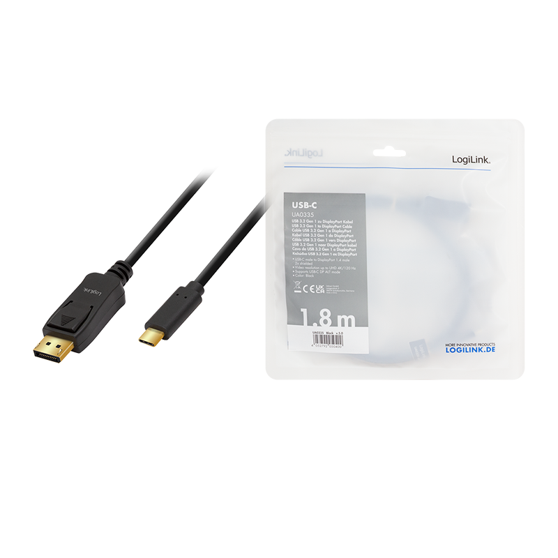 Produktinformationen "USB 3.2 Gen1 Type-C Kabel, C/M zu DP/M, 4K/120 Hz, schwarz, 1,8 m"