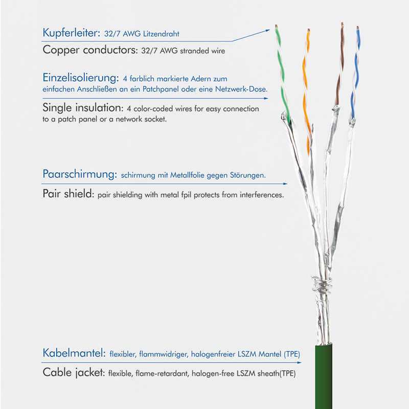 - Cat.6A U/FTP 10G 500MHz Patchkabel LSZH-TPE