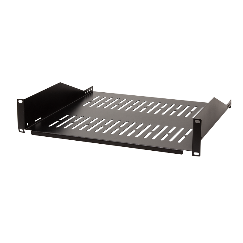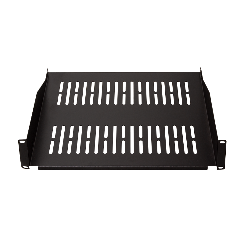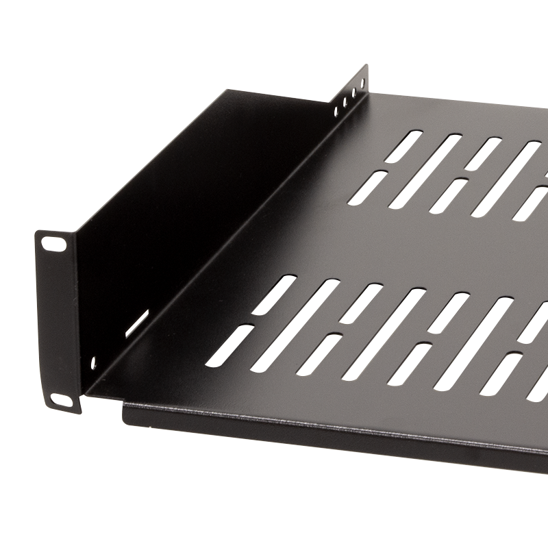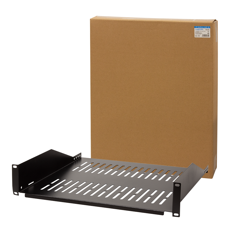 Der stabile Fachboden kann in alle 19" Schränke mit einer 482,6 mm (19")-Ebene eingebaut werden. Zur einfachen Befestigung in der vorderen 19" Profilebene.