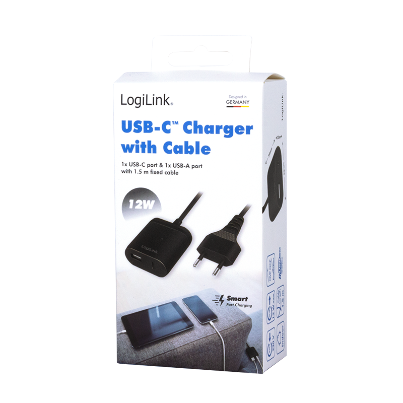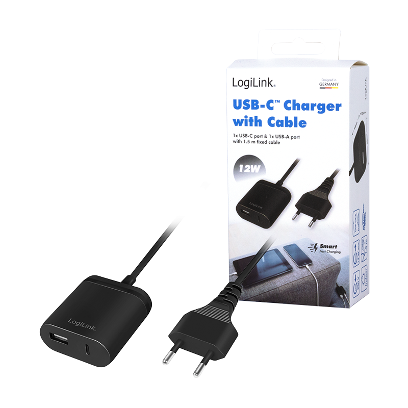 Laden Sie bequem zwei Geräte gleichzeitig an schwer zugänglichen Stellen auf. Mit dem extra langen Festkabel können Sie versteckte Steckdosen mühelos erreichen, z. B. Steckdosen unter dem Tisch oder hinter der Couch. Das schlichte und leichte Design ist ideal für den Gebrauch in jedem Raum zu Hause oder im Büro. Das Ladegerät PA0256 von LogiLink besitzt einen USB-A-Anschluss und einen USB-C-Anschluss mit einer Leistung von 12 W.