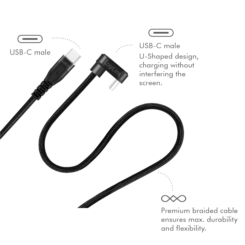 Dieses 180° gewinkelte USB-C-Gaming-Kabel ist ideal für den Anschluss Ihres Handys oder Notebooks an eine Powerbank oder einen USB-Stromadapter ohne dass das Kabel beim Spielgenuss stört. Laden Sie Ihr Gerät bequem und komfortabel während Ihrer Spiel-Session.