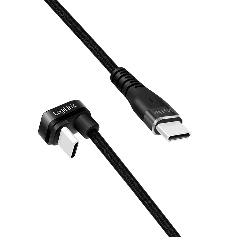 USB 2.0 Type-C-Kabel, C/M 180° zu USB-C/M, Alu, schwarz, 3 m