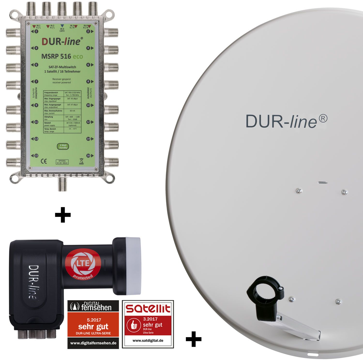 • 1 x DUR-line ® + Ultra Quattro LNB mit integriertem LTE Filter