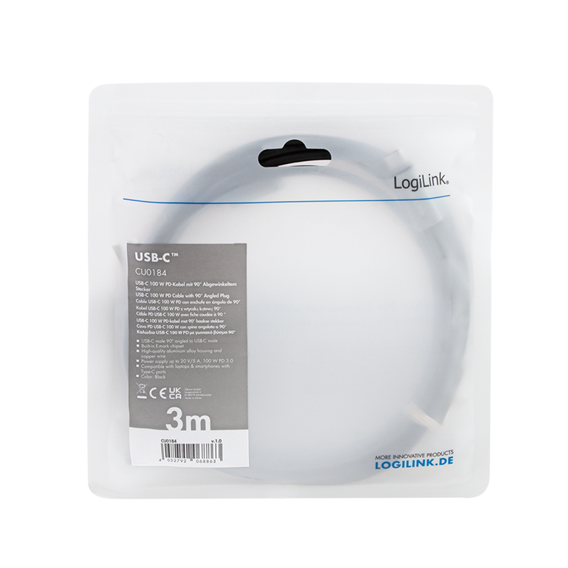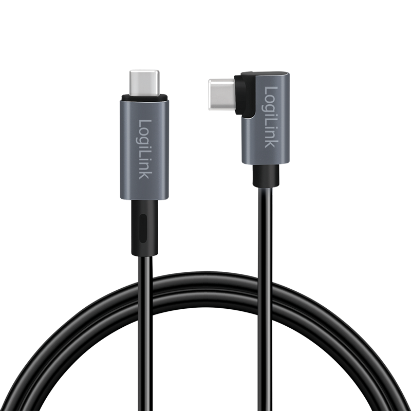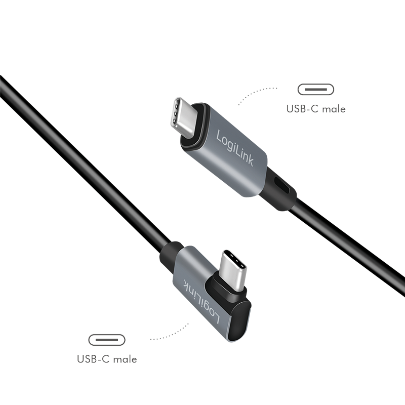 Produktinformationen "USB 2.0 Type-C-Kabel, C/M 90° zu USB-C/M, E-mark, PD, schwarz/grau, 3 m"