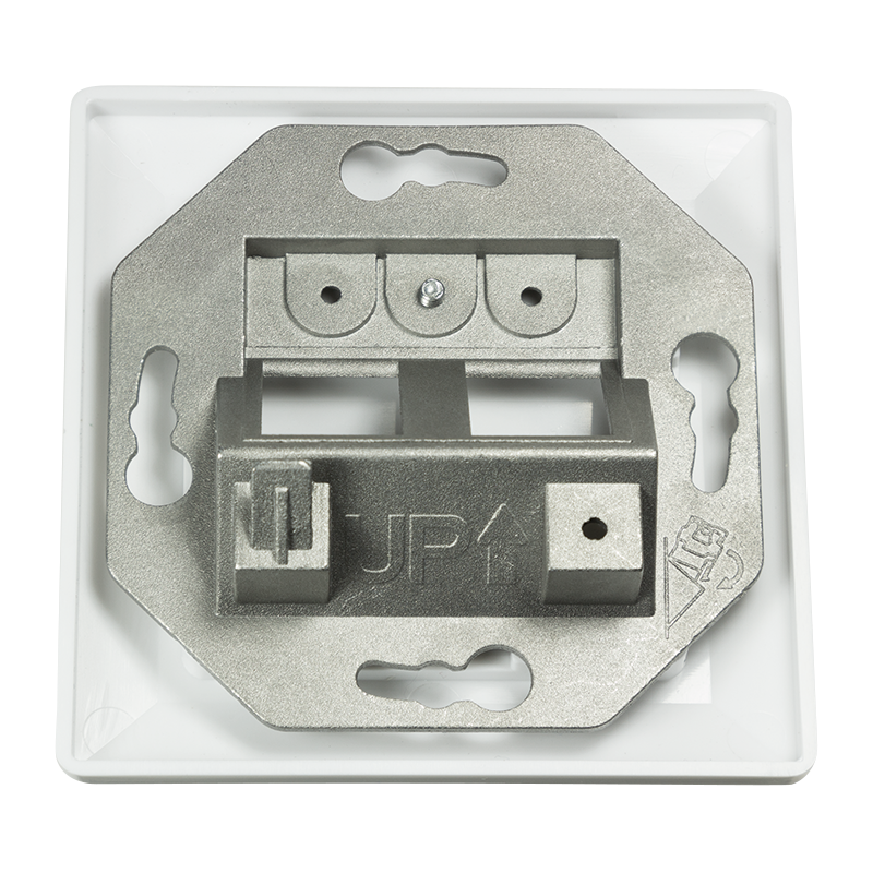 UAE Leerdose bestehend aus Zentralplatte, Außenblende und Einbaurahmen zur Aufnahme von Keystone-Modulen mit Einrastmontage. Geeignet für handelsübliche Keystone-Module, egal ob für Netzwerk- oder Multimedia- Anwendungen. Ideal für die Unterputzmontage, aber auch zur Aufputzmontage geeignet bei Verwendung des optionalen Aufputz-Leergehäuses (Module u. Aufputzgehäuse nicht im Lieferumfang).