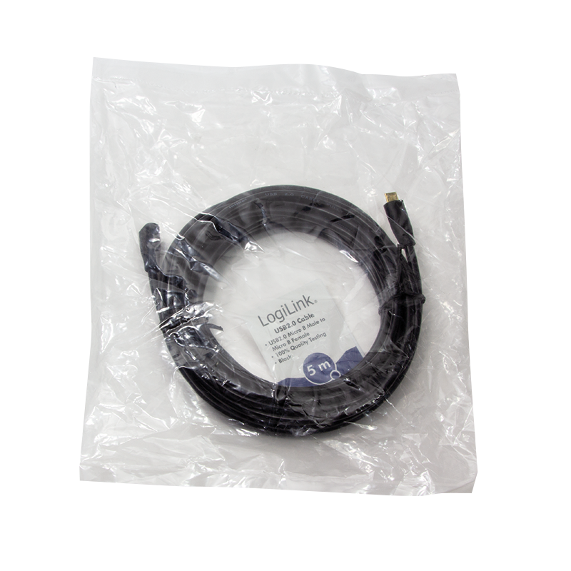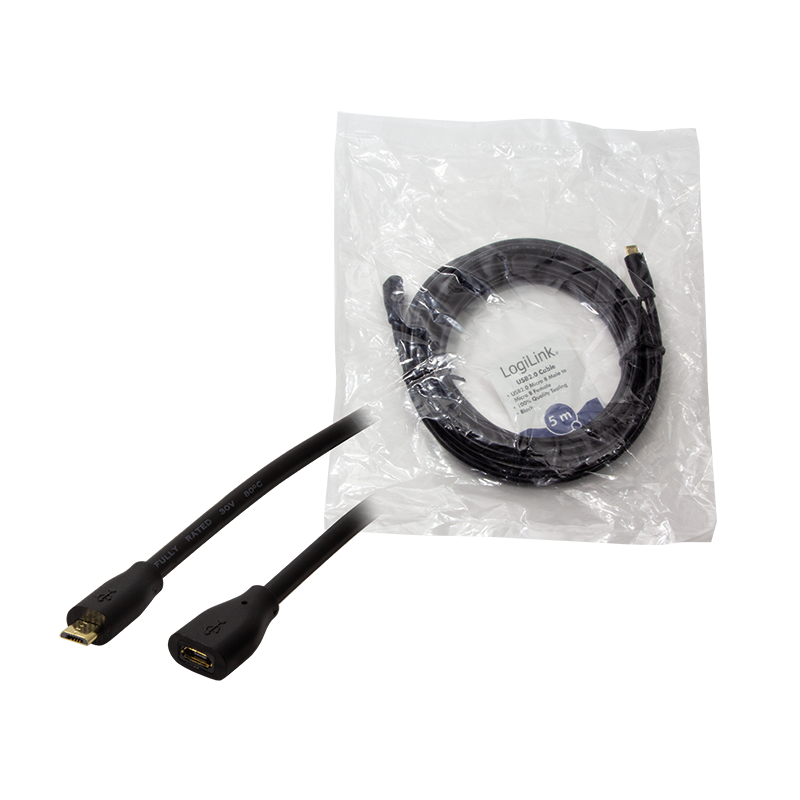 Produktinformationen "USB 2.0-Kabel, Micro-USB/M zu Micro-USB/F, schwarz, 5 m"