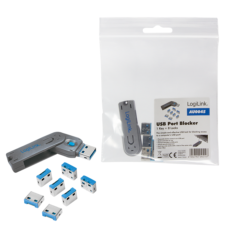 Das USB-Port Schloss von LogiLink ist ein einfacher und effektiver Weg, um den USB-Port an einem Computer zu blockieren. Netzwerkadministratoren können mit diesem kleinen und praktischen Gerät verhindern, dass der Port genutzt wird und somit das Kopieren von sensiblen Daten oder dem Übertragen von Viren per MP3-Player, USB Sticks und anderen Speichergeräten vorzubeugen.