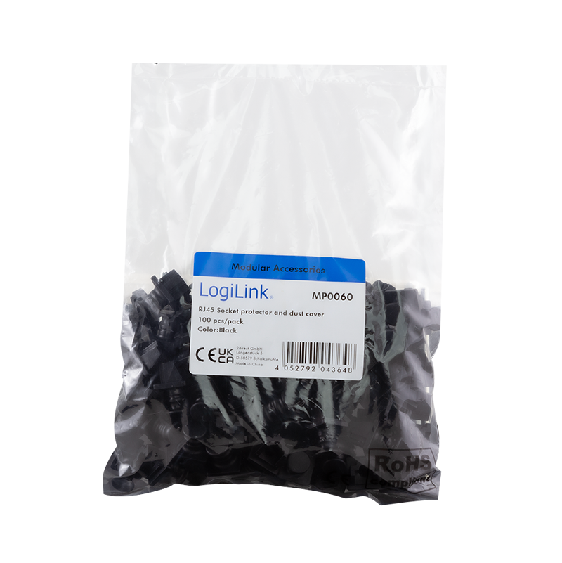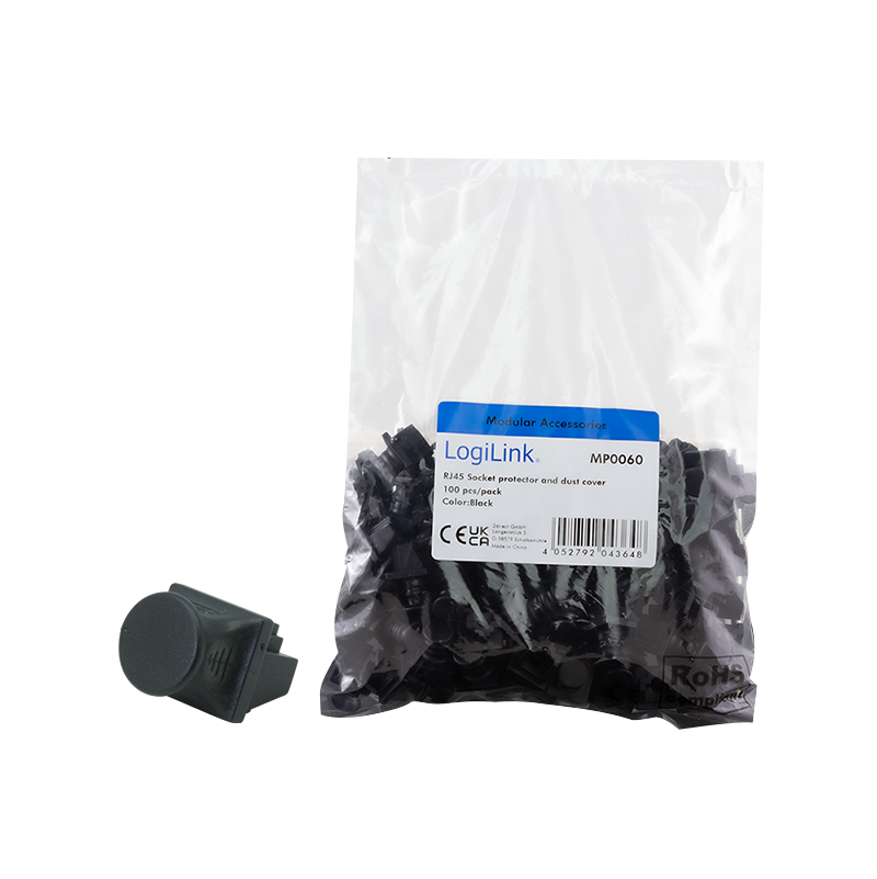 Produktinformationen "Schutzkappe und Staubschutz für RJ45-Buchsen, 100 St., schwarz"