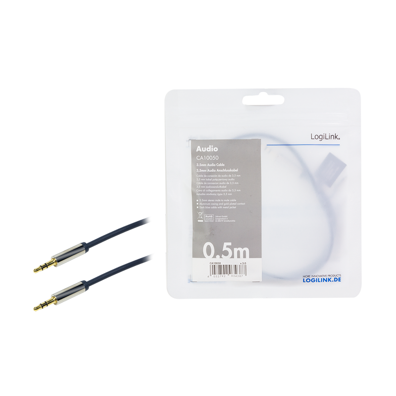 Produktinformationen "Audio-Kabel, 3,5 mm 3-Pin/M zu 3,5 mm 3-Pin/M, blau, 0,5 m"