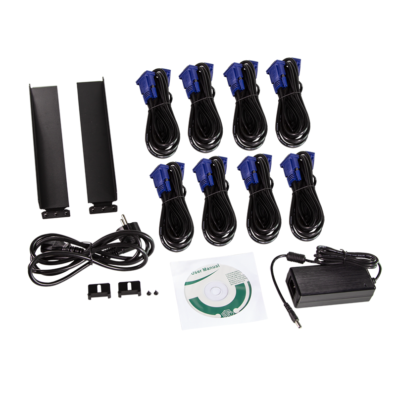 - Mini-Steuerkonsole mit LCD, Tastatur, Maus und 8-Port KVM-Switch