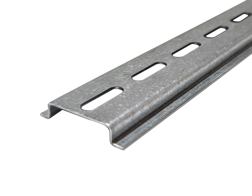 Die DIN-Hutschiene ist eine vielseitige und robuste Lösung für zahlreiche Anwendungen im Bereich der Elektroinstallation. Hergestellt aus 1mm starkem, verzinktem Bandstahl, bietet diese Tragschiene eine hohe Langlebigkeit und Zuverlässigkeit. Ihre Widerstandsfähigkeit gegen Rost und Oxidation macht sie für den Einsatz sowohl im Innen- als auch im Außenbereich optimal geeignet.