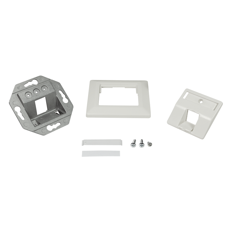 UAE Leerdose bestehend aus Zentralplatte, Außenblende und Einbaurahmen zur Aufnahme von Keystone-Modulen mit Einrastmontage. Geeignet für handelsübliche Keystone-Module, egal ob für Netzwerk- oder Multimedia- Anwendungen. Ideal für die Unterputzmontage, aber auch zur Aufputzmontage geeignet bei Verwendung des optionalen Aufputz-Leergehäuses (Module u. Aufputzgehäuse nicht im Lieferumfang).