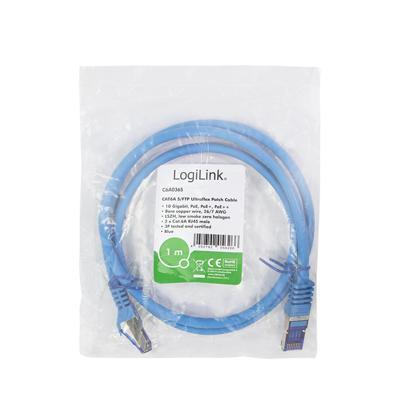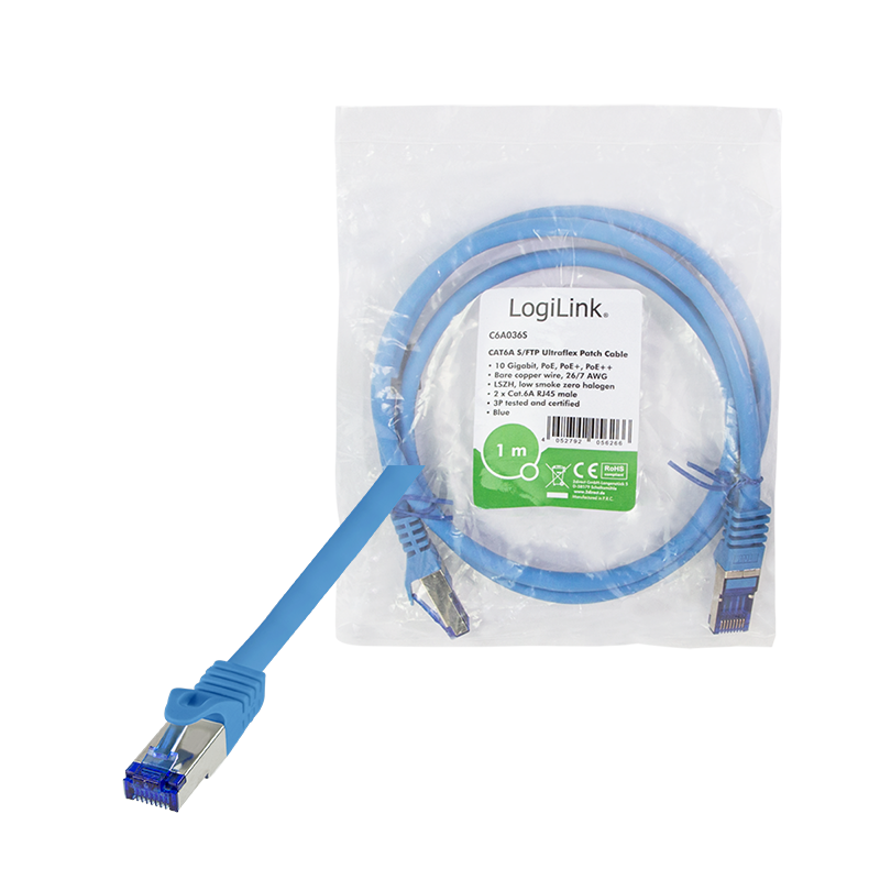 Produktinformationen "Patchkabel Ultraflex, Cat.6A, S/FTP, blau, 1 m"