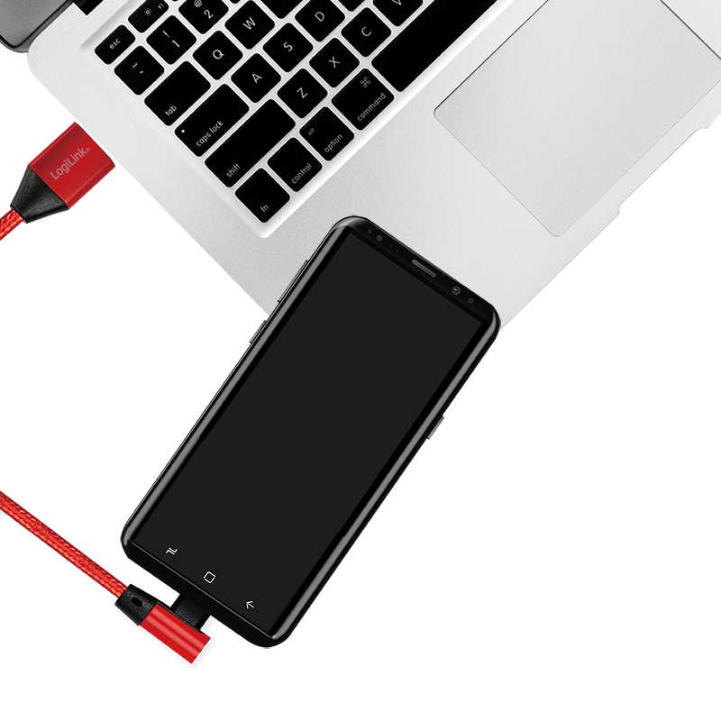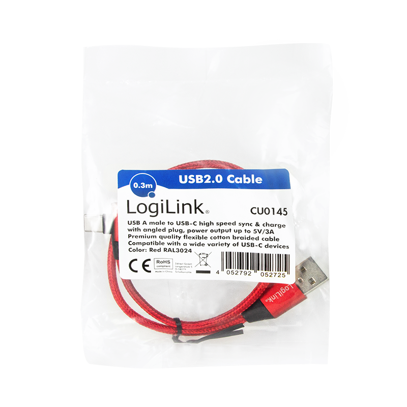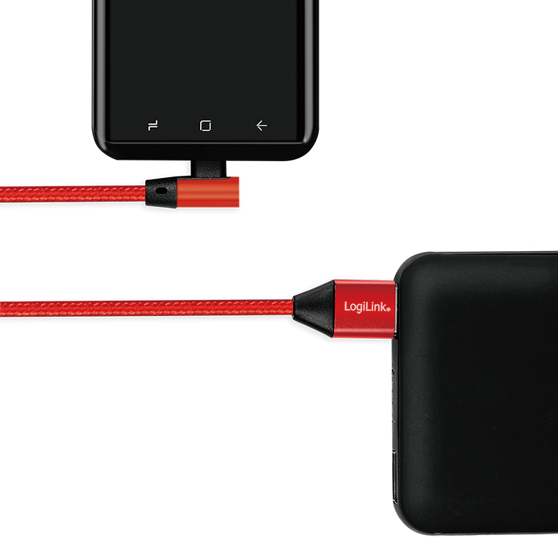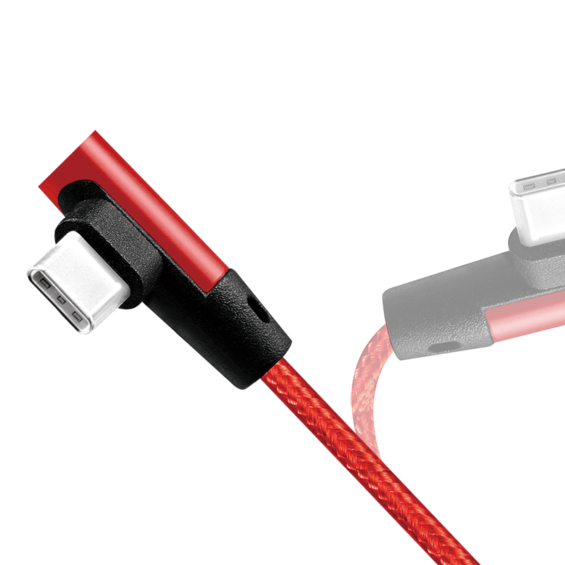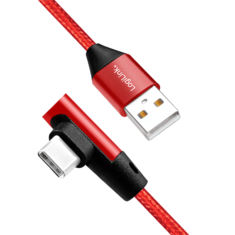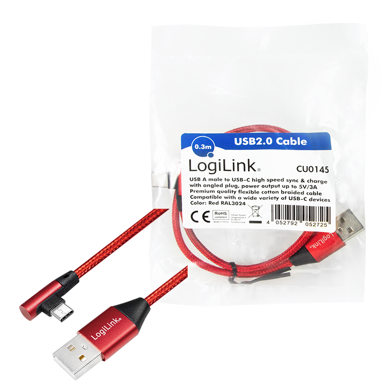 Produktinformationen "USB 2.0 Type-C Kabel, C/M (90°) zu USB-A/M, Stoff, rot, 0,3 m"